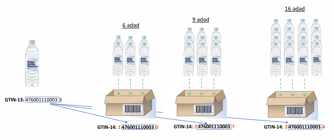 • GTIN-14 pərakəndə satış məntəqələrində istifadə üçün nəzərdə tutulmur.